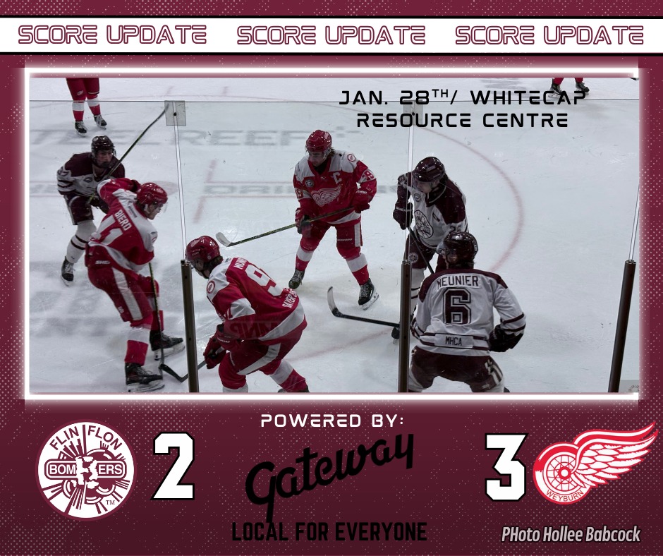 The Bombers were also missing Rhett Ewen, Nathan Lalumiere, Nash Holmes, Keith Marsden and Ryder Mucha who were out with injuries. Wyatt Stinton was suspended for the game for a kneeing penalty the night before.
