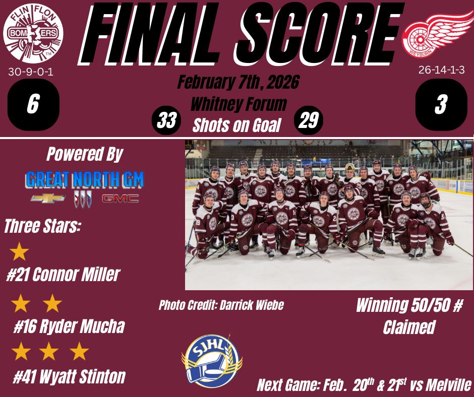 Flin Flon was missing a number of their offensive weapons including Lies who left after that horrible slash, Stinton also left the game after a elbow high to the head. The Bombers also didn’t have Connor Miller, Ryder Mucha, Maverick Deslisle, Ryder Knutson and Kyle Marsden who were all out due to injury but found a way to get it done.
